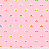 Tula Pink has done it again! Her new collection Daydream is all of our tropical dreams come true. Tula's inspiration for the collection "Daydreamer is an escape to a surreal place of make believe and wonder. Everything here is light and happy. When I first landed I met a pair of striped legged flamingos nibbling on the very shrimp that give them their radiant pink color. Overhead I witnessed a flock of vividly colored macaws in all of their vibrant plumage soaring through an ombre colored sunset. An array of omniscient butterflies landed on my shoulders and fluttered their soft wings against my cheeks as a sweet welcoming hello. In the tall grass behind me lurked a family of rainbow jaguars that sparkled like constellations under a full moon. A panorama of tiny rainbows lit up the sky and reminded me of the magic that happens when the sun meets the rain. The sweet nectar of tropical fruits bloomed all around me filling the air with fresh sugary delight."