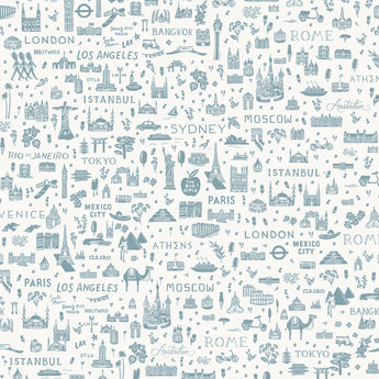 Bon Voyage - World Traveler Silhouette Blue Fabric